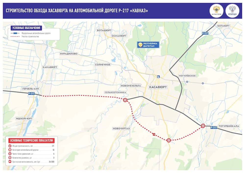 «Обход города Хасавюрта – это один из трех больших обходов на федеральной дороге Р-217 «Кавказ» на территории Республики Дагестан. Сегодня мы стартуем с очень большой программой, которая реализуется во исполнение поручений Президента РФ. Обход Хасавюрта, Махачкалы и Дербента, конечно же, имеют большое значение в решении социальных, экономических и геополитических задач, учитывая то, что они находятся на международном транспортном коридоре «Север – Юг», обеспечивают транспортную доступность республик Северного Кавказа и населенных пунктов Республики Дагестан, пунктов пропуска, а также связывают всю транспортную сеть Российской Федерации в единое целое», – подчеркнул он.
